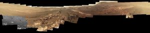 NASA's Opportunity rover captured an image of this rock nicknamed, Jornada del Muerto, while in Perseverance Valley.