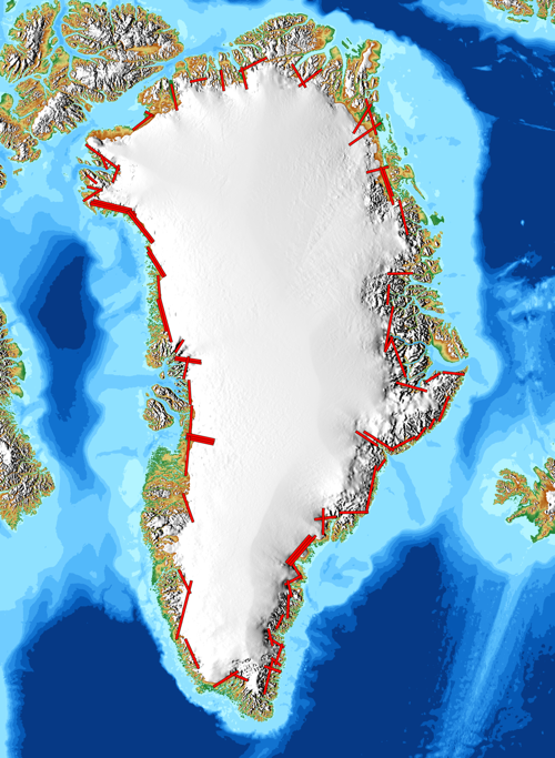So every spring, the Glacier and Ice Surface Topography Interferometer (GLISTIN-A) radar—also known as UAVSAR’s Ka-band radar—is deployed to Greenland on NASA’s G-III plane. It flies 80 lines over Greenland’s more than 200 glaciers.