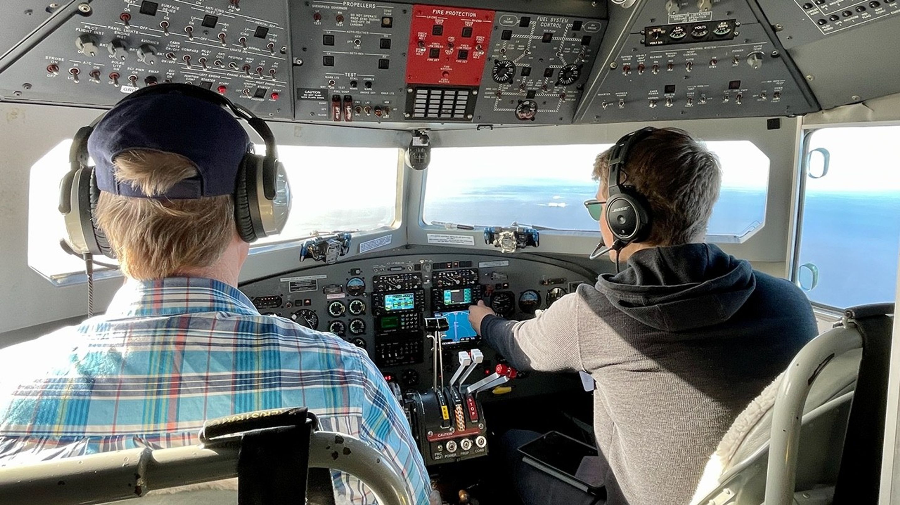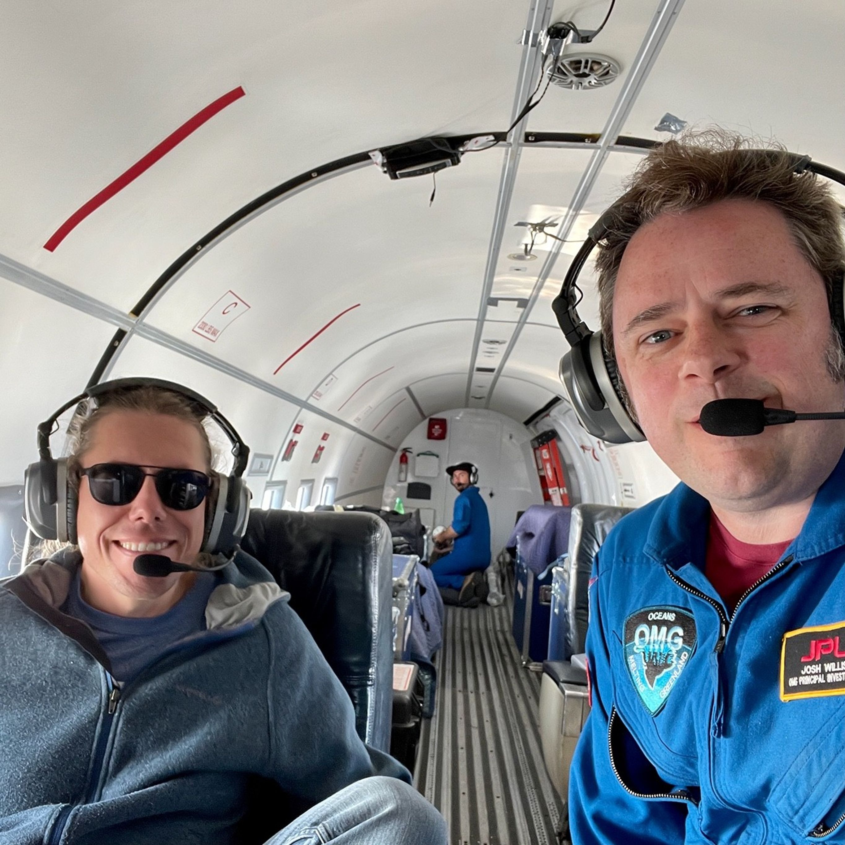 In October 2017, mission scientists and crew dropped 240 ocean probes from a C-130 aircraft into the waters around Greenland to measure ocean temperature. Footage includes interior and exterior shots of the aircraft with crew and scientists at work, and shots from a chase plane showing the probes dropping.