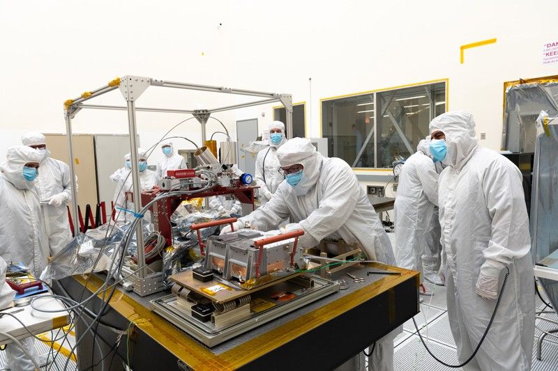 Engineers inspect Europa Clipper's ultraviolet spectrograph (called Europa-UVS) in a cleanroom at NASA's Jet Propulsion Laboratory in Southern California, following the delivery of the instrument from Southwest Research Institute (SwRI). Credit: NASA/JPL-Caltech