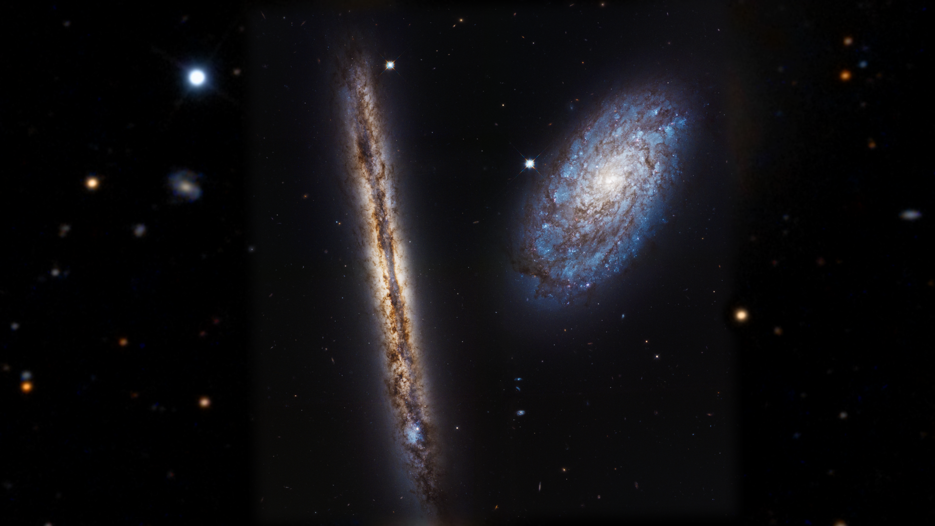 In celebration of the 27th anniversary of the launch of NASA's Hubble Space Telescope on April 24, 1990, astronomers used the legendary telescope to take a portrait of a stunning pair of spiral galaxies. This starry pair offers a glimpse of what our Milky Way galaxy would look like to an outside observer.