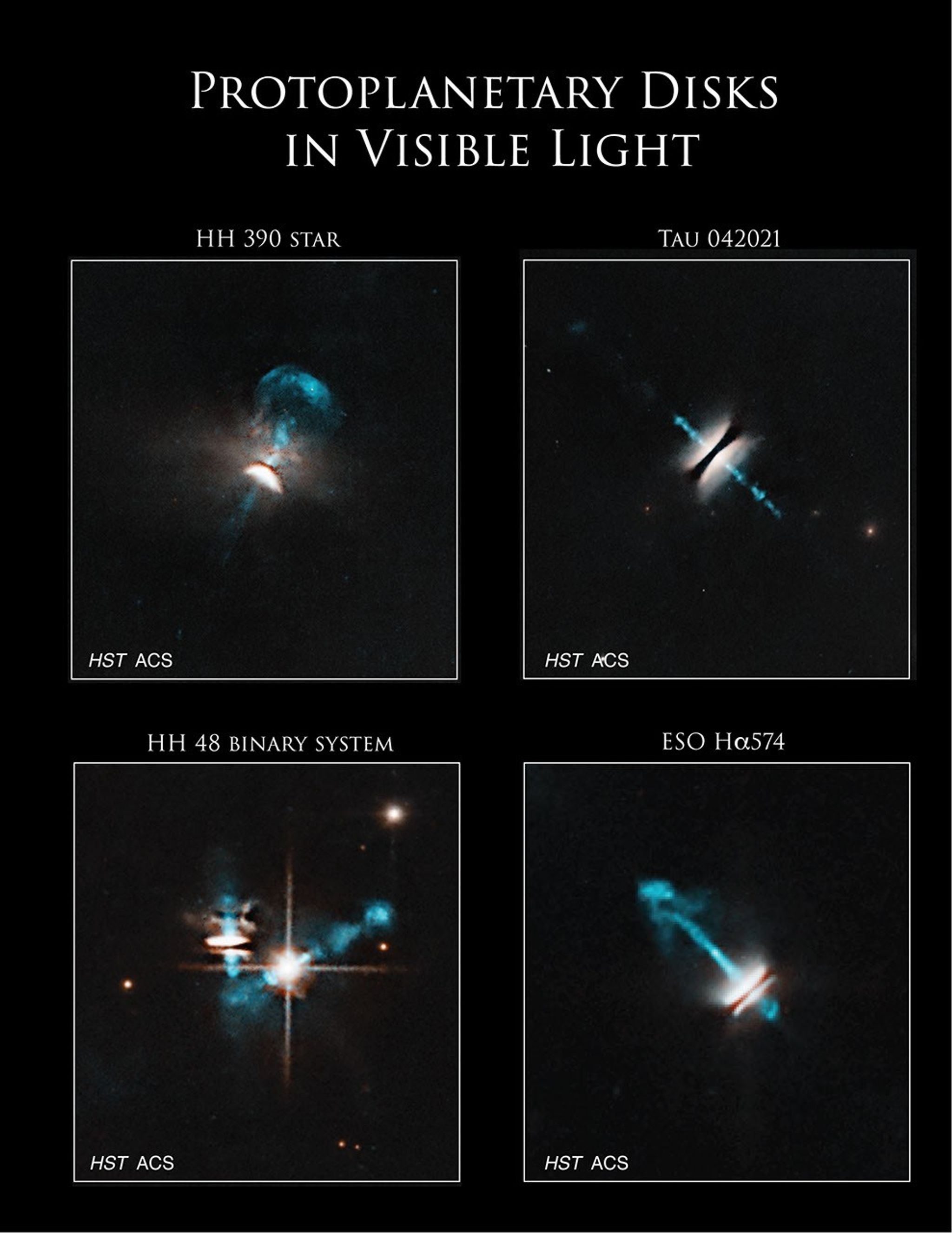 This collection of new images taken by NASA’s Hubble Space Telescope showcases protoplanetary disks, the swirling masses of gas and dust that surround forming stars, in both visible and infrared wavelengths. Through observations of young stellar objects like these, Hubble helps scientists better understand how stars form.