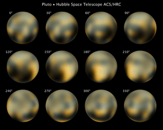 This is the most detailed view to date of the entire surface of the dwarf planet Pluto, as constructed from multiple NASA Hubble Space Telescope photographs taken from 2002 to 2003. NASA's New Horizons space probe, now halfway to Pluto, will get sharper images of Pluto when it is six months away from a close flyby in 2015.