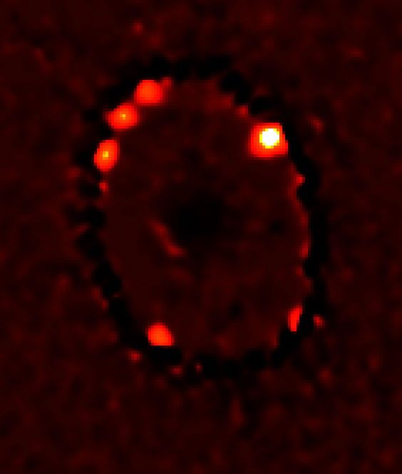 Upon seeing the new Hubble pictures, Kirshner remarked, "It's about time. We saw that first hotspot two years ago, but I was getting nervous that we might have been mistaken about its location. It's great to see the shockwave start to light up the ring."
