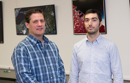 Aaron Gerace, left, and Matt Montanaro developed a data processing algorithm that mitigates the impact of stray light in the Landsat 8 thermal infrared sensor. Image credit: RIT