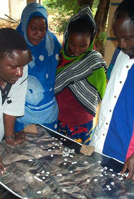 The Jane Goodall Institute facilitates a participatory mapping exercise in Mtanga village, Tanzania, using high-resolution satellite imagery. Photo credit: The Jane Goodall Institute/Lilian Pintea
