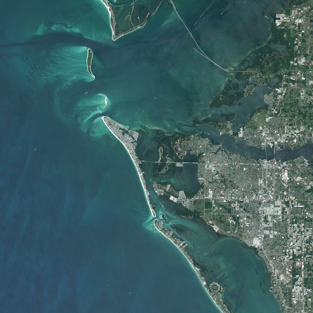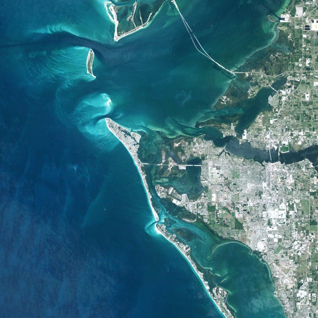 Caladesi is no longer a true island as shown on the Landsat image–it is now connected to the developed Clearwater Beach.