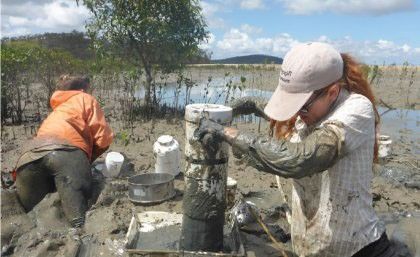 Sampling invertebrates within deep mudflats in Gladstone, Australia. Photo credit: Chi-Yeung Choi