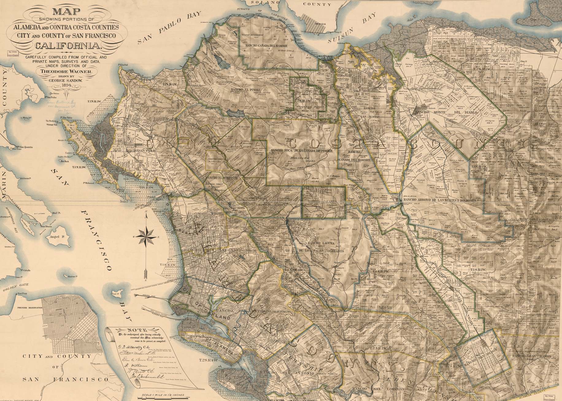 - Library of Congress, “Map showing portions of Alameda and Contra Costa counties, city and county of San Francisco, California, carefully compiled from official and private maps, surveys and data”