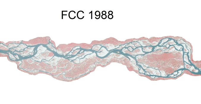 The historic archive of data provided by the Landsat program proved to be very beneficial in analyzing long term changes in the river course. The Landsat data helped in identifying the long-term stability pattern of these islands. It also helped in mapping the regions where erosion and deposition have taken place.