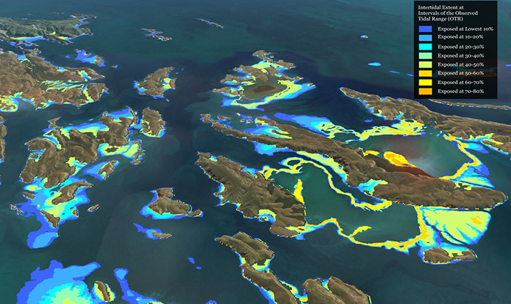 Combining the resulting nine maps yielded the first continent-wide tidal extent map for Australia. And because tidal extent is a function of the tidal range and the shoreline elevation, the data set also provides relative topography, allowing the researchers to derive coastal elevation models which may prove useful for future hydrodynamic modeling (used for applications such as current forecasting).