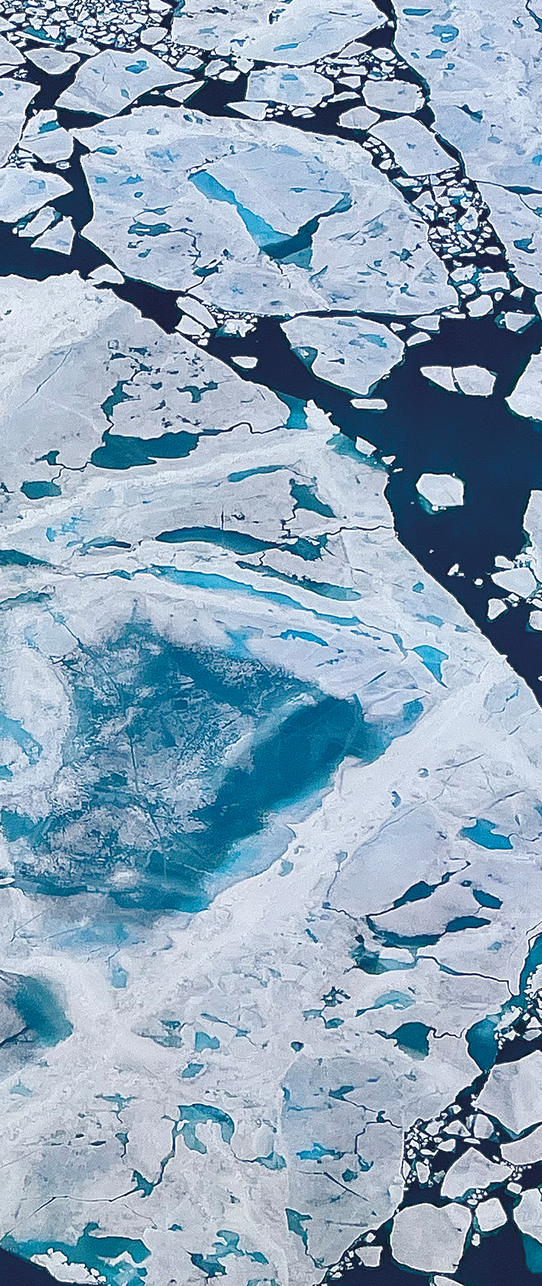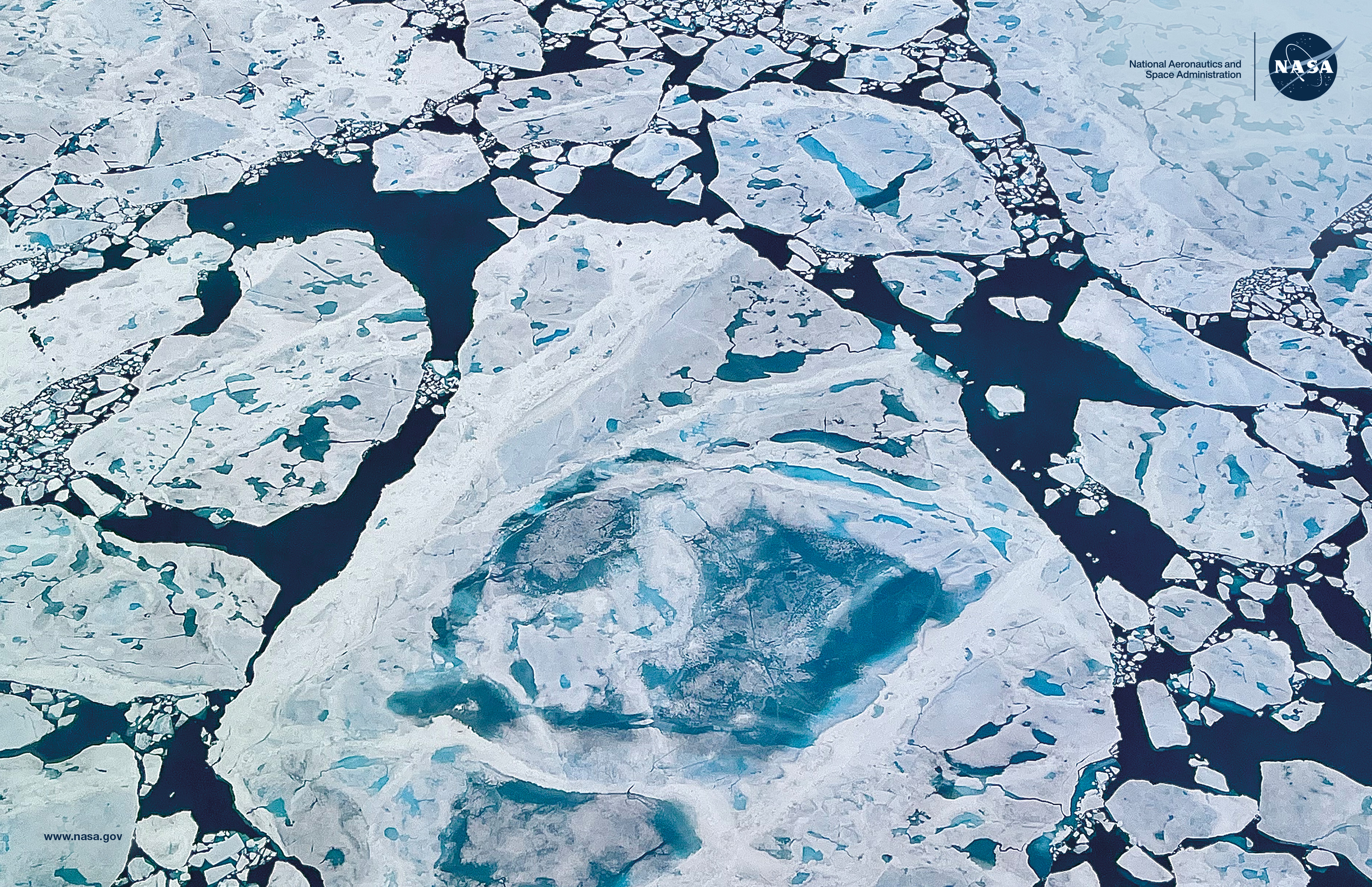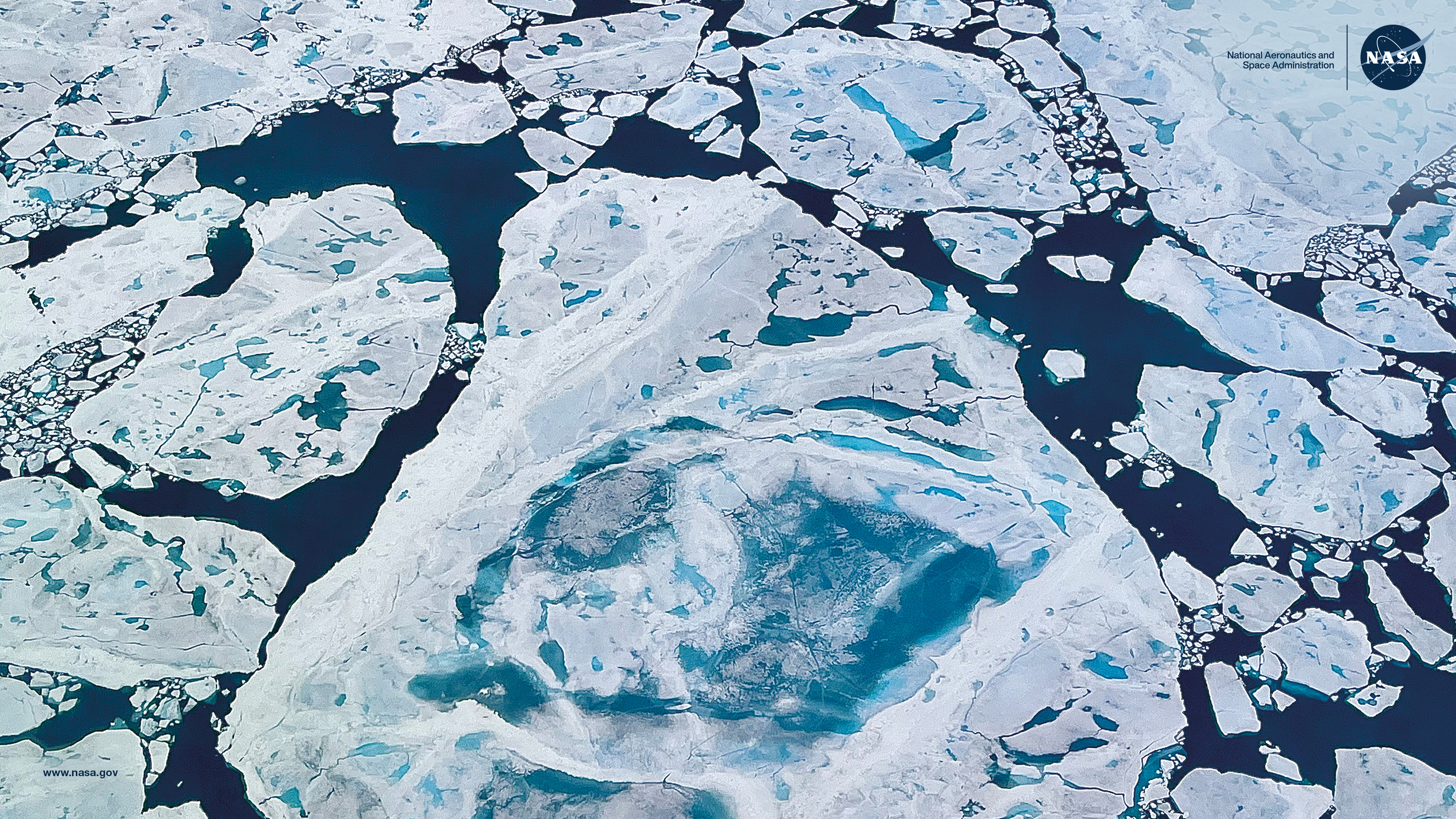 Sea ice is frozen seawater that floats in the ocean. This photo, taken from NASA’s Gulfstream V Research Aircraft on July 21, 2022, shows Arctic sea ice in the Lincoln Sea north of Greenland.
