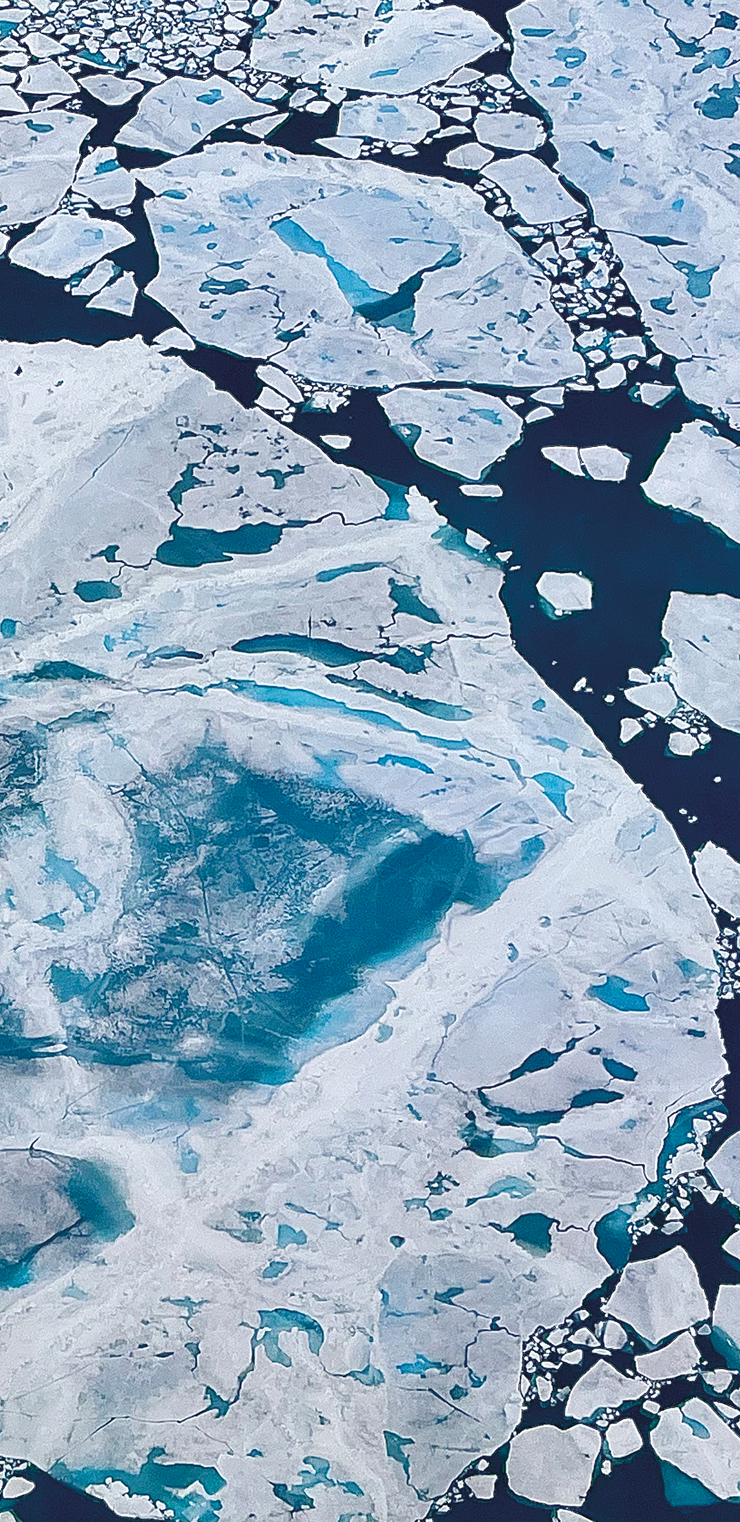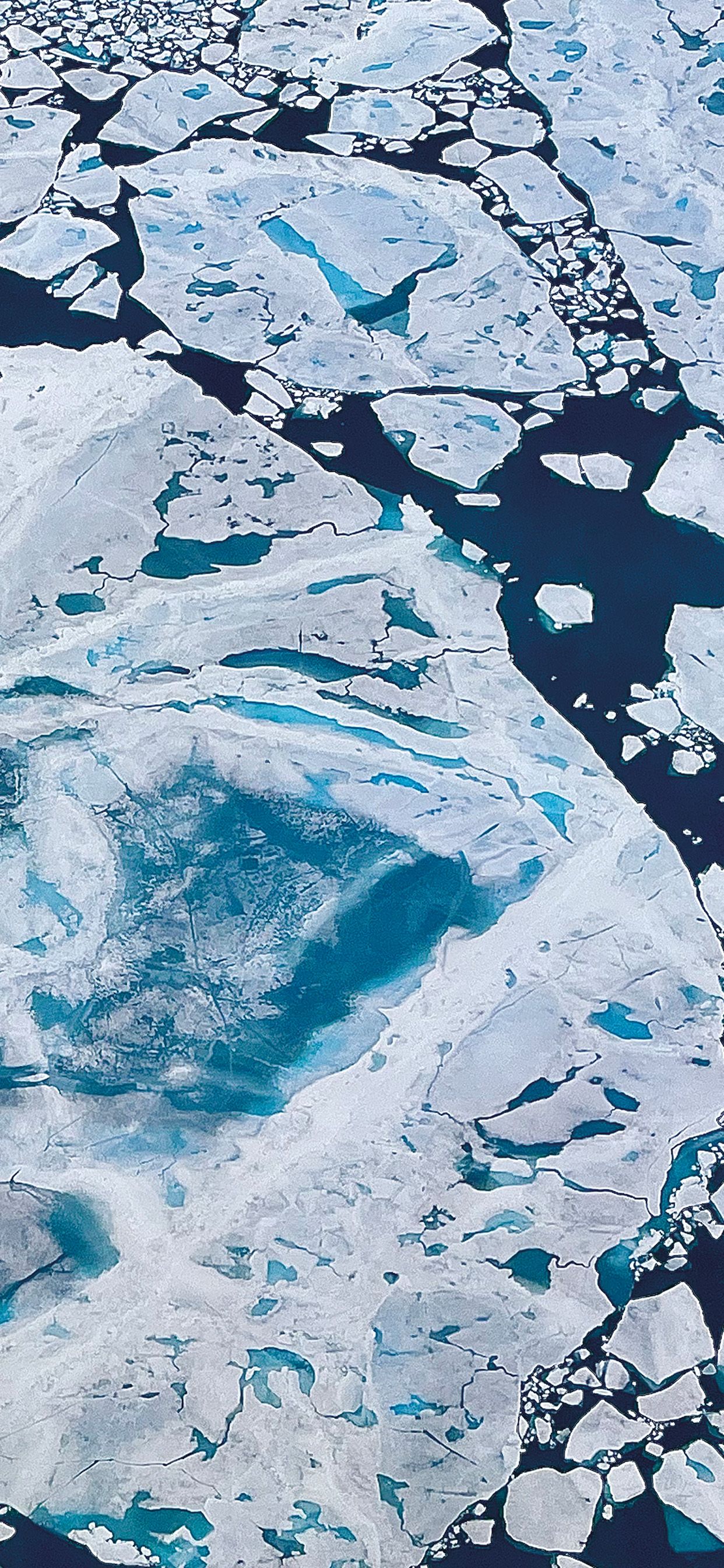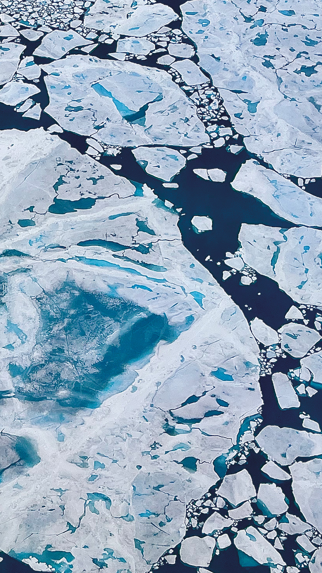 Sea ice is frozen seawater that floats in the ocean. This photo, taken from NASA’s Gulfstream V Research Aircraft on July 21, 2022, shows Arctic sea ice in the Lincoln Sea north of Greenland.