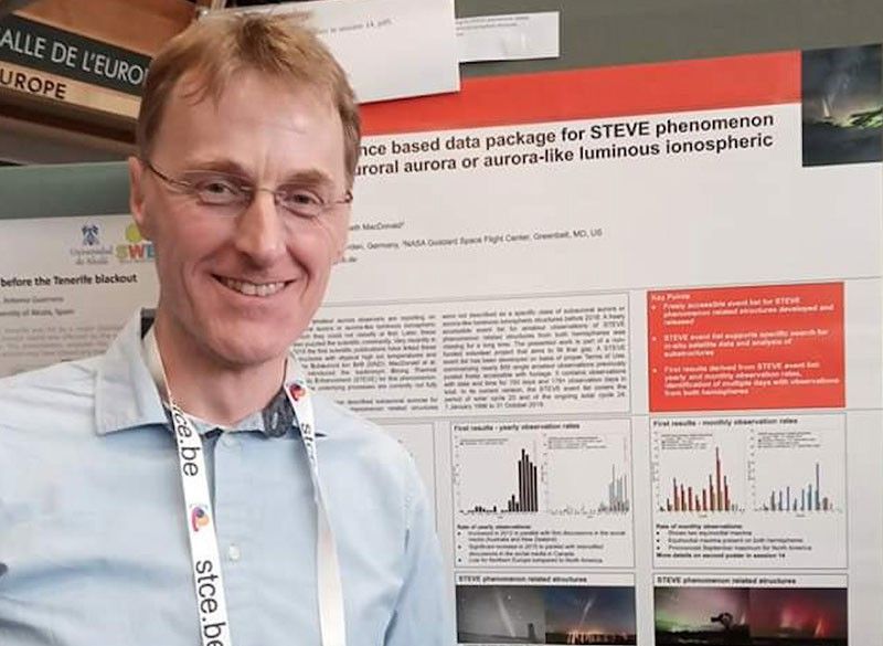 So far, I have been involved in the publication of two peer-reviewed research publications as a citizen scientist. The first was published in the journal Space Weather and was titled “Early Ground‐Based Work by Auroral Pioneer Carl Størmer on the High‐Altitude Detached Subauroral Arcs Now Known as ‘STEVE.’” We report on observations of a specific type of aurora-like structure observed in the first half of the 20th century by the Norwegian aurora pioneer Carl Størmer. We interpret these observations as examples of early observations of STEVE. I was recognized as first author in this publication because I was the one who rediscovered Størmer’s nearly forgotten publications and recognized their significance for the current research on STEVE. The Aurorasaurus blog made a post about our paper as well.