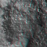 This is a 3-D anaglyph showing a microscopic image taken of an area measuring 3 centimeters (1.2 inches) across on the rock called Adirondack. The image was taken at Gusev Crater on the 33rd day of the Mars Exploration Rover Spirit's journey (Feb. 5, 2004), after the rover used its rock abrasion tool brush to clean the surface of the rock. Dust, which was pushed off to the side during cleaning, can still be seen to the left and in low areas of the rock.