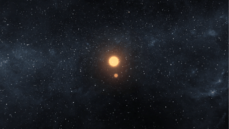 This artist's animation illustrates the Kepler-16 system from an overhead view, showing the eccentric orbits of the two stars as they twirl around each other every 41 days like figure skaters. The planet, which was discovered by NASA's Kepler mission, orbits in a circle around both of the stars every 229 days. The larger of the stars is about 69 percent of the mass of the sun, and the smaller is about 20 percent of the sun's mass. The planet is about the mass of Saturn. All three bodies orbit in the same plane, which is why Kepler can observe the various planetary and stellar eclipses.