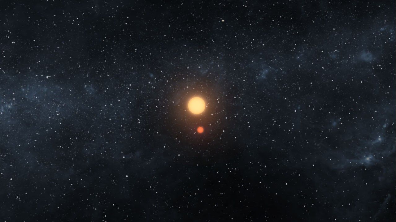 Though the planet orbits its star from a distance comparable to that of Venus in our own solar system, it is actually cold. This is because its two parent stars are both smaller than the sun and don't give off as much heat.