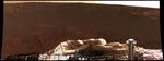 The interior of a crater surrounding the Mars Exploration Rover Opportunity at Meridiani Planum on Mars can be seen in this color image from the rover's panoramic camera. This is the darkest landing site ever visited by a spacecraft on Mars. The rim of the crater is approximately 10 meters (32 feet) from the rover. The crater is estimated to be 20 meters (65 feet) in diameter. Scientists are intrigued by the abundance of rock outcrops dispersed throughout the crater, as well as the crater's soil, which appears to be a mixture of coarse gray grains and fine reddish grains.