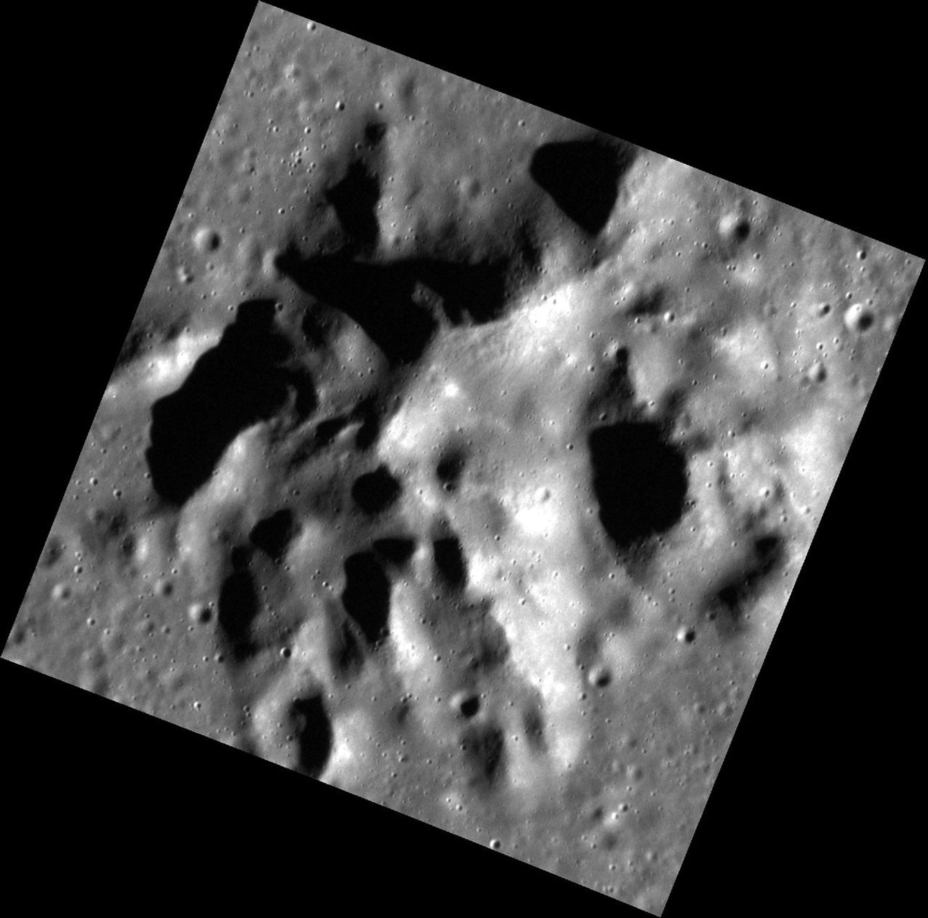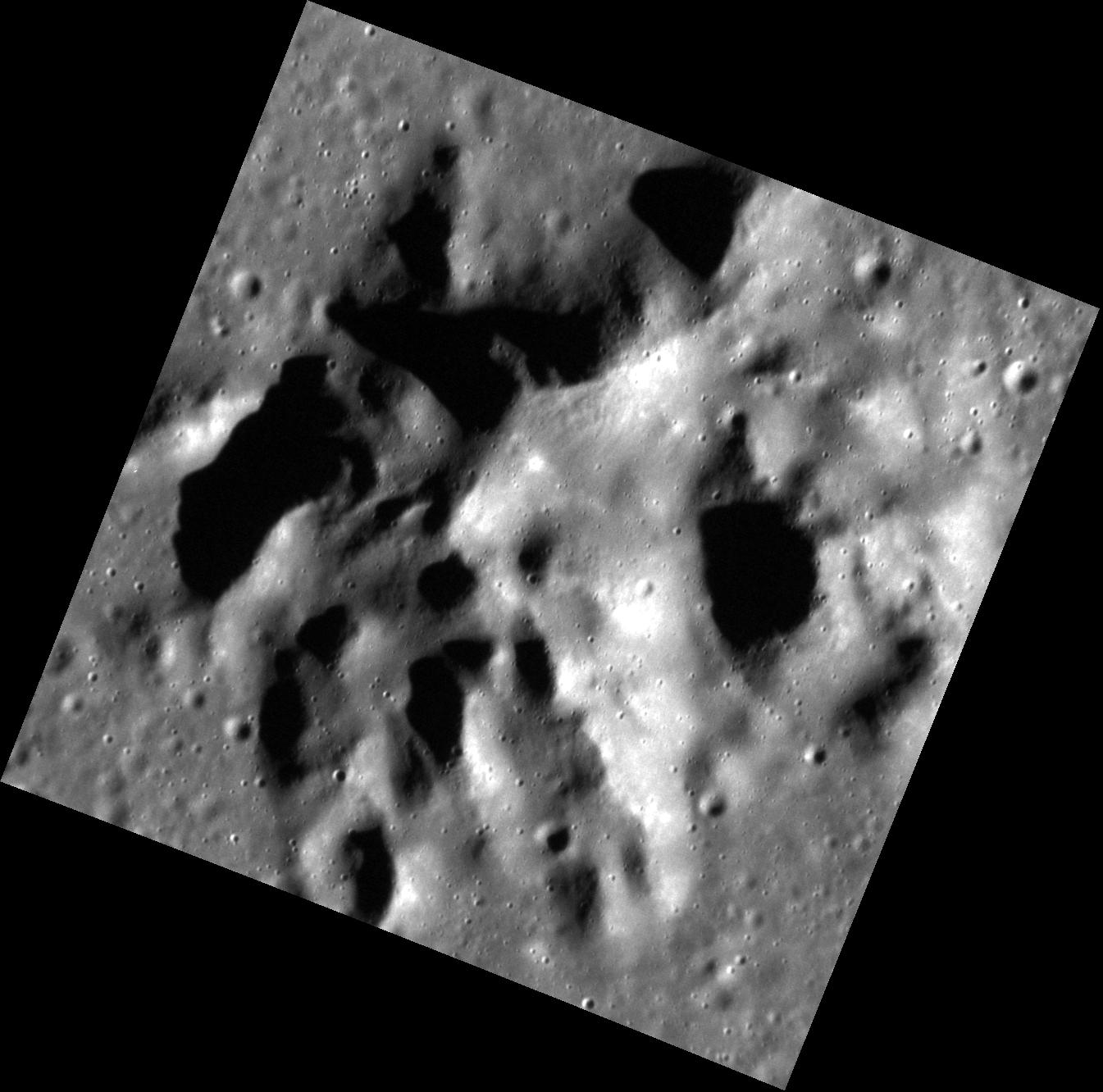 The massive central peak of an unnamed crater over 100 km in diameter fills the frame. Central peaks form when material is uplifted from depth during the crater forming process. This mountainous peak is around 1 km (0.6 miles) tall.