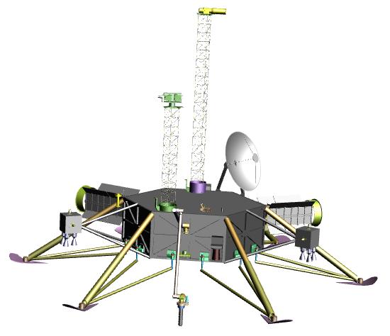 This graphic shows a possible robotic lander for a future mission to Jupiter's moon Europa. Scientists want such a spacecraft equipped with the tools to answer key questions about the moon's composition, geological activity and possibility of hosting liquid water.