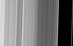 Straw-like patterns of clumping ring material are also visible along the edge of the outer B ring near the right of this image. See PIA09855 to learn more about these features.