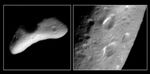 The Near Earth Asteroid Rendezvous (NEAR) spacecraft snapped the image on the left (Image of the Day Feb. 13, 2000 B) during its approach to Eros on Feb. 11, 2000, from a range of 2590 kilometers (1,609 miles). This image shows a heart-shaped depression about 5 km (3 miles) long. The image mosaic on the right was taken from 204 km (127 miles) on March 3, 2000 and reveals that the mysterious heart-shaped feature is actually 3 separate craters. The oblique lighting conditions and low resolution of the earlier image created the illusion of a heart shape.