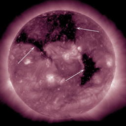 The Sun was visually dominated by three substantial coronal holes that rotated across the face of the Sun this week (Sept. 8-10, 2015). Coronal holes are areas where the Sun's magnetic field is open and a source of streaming solar wind. They appear darker in extreme ultraviolet light because there is less material in the hole areas being imaged in this specific wavelength of light. It is a little unusual to have three coronal holes at the same time, but neither is it a rare occurrence.