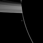 Enceladus is farther from Cassini than the planet is here. The plumes can be faintly seen at the bottom of the moon in this image. See PIA11688 to learn more about Enceladus (504 kilometers, or 313 miles across).