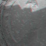 This is a 3-D anaglyph showing a microscopic image taken of an area measuring 3 centimeters (1.2 inches) across on the rock called Adirondack. The image was taken at Gusev Crater on the 33rd day of the Mars Exploration Rover Spirit's journey (Feb. 5, 2004), after the rover used its rock abrasion tool to drill into the rock. Debris from the use of the tool is visible to the left of the hole.