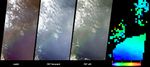 At right is a map of aerosol optical depth, a measure of the amount of aerosol present in the atmosphere and one of several key variables used to characterize their climatic and environmental influence. The extent of haze across Galveston Bay can be identified by the presence of light blue and green pixels, and places where clouds or other factors precluded a retrieval are shown in dark grey. MISR uses the changes in the atmosphere's ability to transmit light and the variation in scene brightness at different viewing angles to retrieve aerosol optical depth, and to deduce some information about particle properties, such as size, shape and composition.