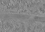 Agenor Linea is an unusual feature on Jupiter's icy moon Europa since it is brighter than its surroundings while most of Europa's ridges and bands are relatively dark. During the Galileo spacecraft's 17th orbit of Jupiter, high resolution images were obtained of Agenor Linea near Europa's day/night boundary so as to emphasize fine surface details. This mosaic shows high resolution images embedded in slightly lower resolution images which were also acquired during the 17th orbit. The Galileo images show that Agenoris not a ridge, but is relatively flat. Its interior consists of several long bands, just one of which is the very bright feature known as Agenor. Each long band shows fine striations along its length. A few very small craters pockmark Agenor Linea and its surroundings. Agenor is cut by some narrow fractures, and by some small subcircular features called lenticulae. Rough chaotic terrain is visible at the top and bottom of this photo, and appears to be "eating away" at the edges of Agenor. Though previously it was suspected that Agenor Linea might be one of the youngest features on Europa, this new [sic] view shows that it is probably not.