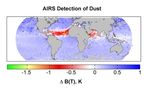 Detection of dust: global map for July 2003 from the Atmospheric Infrared Sounder (AIRS) instrument onboard NASA's Aqua satellite.