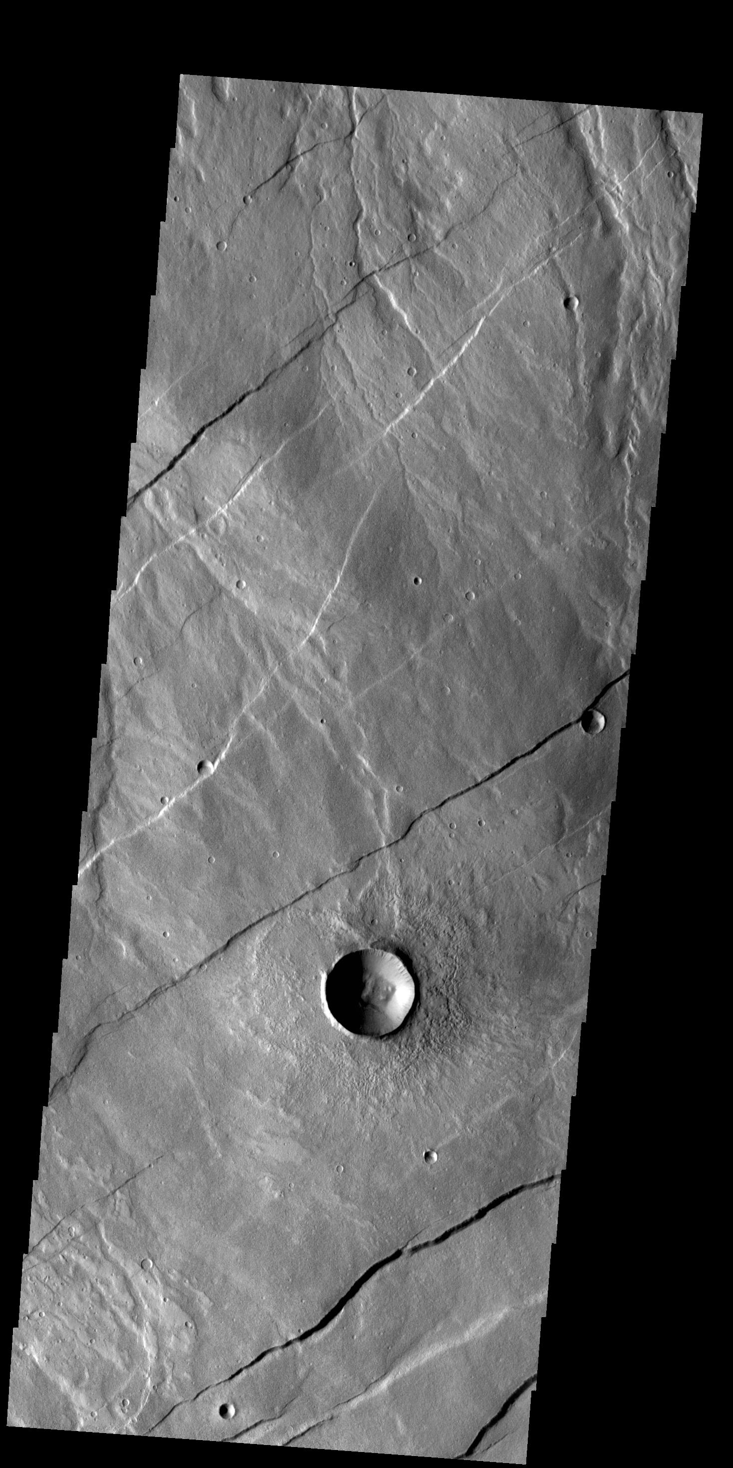 Today's VIS image shows a portion of Alba Fossae, located on the northwestern margin of Alba Mons. Small channels are also visible.