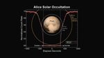 This figure shows how the Alice instrument count rate changed over time during the sunset and sunrise observations. The count rate is largest when the line of sight to the sun is outside of the atmosphere at the start and end times. Molecular nitrogen (N2) starts absorbing sunlight in the upper reaches of Pluto's atmosphere, decreasing as the spacecraft approaches the planet's shadow. As the occultation progresses, atmospheric methane and hydrocarbons can also absorb the sunlight and further decrease the count rate. When the spacecraft is totally in Pluto's shadow the count rate goes to zero. As the spacecraft emerges from Pluto's shadow into sunrise, the process is reversed. By plotting the observed count rate in the reverse time direction, it is seen that the atmospheres on opposite sides of Pluto are nearly identical.
