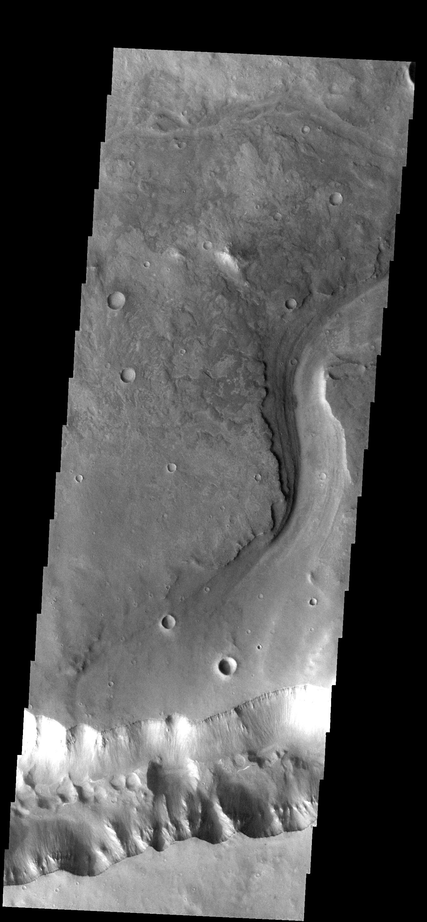 This image show where Allegheny Vallis intersects Ophir Cavus (the canyon at the bottom of the frame).