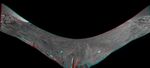 This stereo view from the base of "Burns Cliff" in the inner wall of "Endurance Crater" combines several frames taken by Opportunity's navigation camera during the NASA rover's 280th martian day (Nov. 6, 2004). It is presented in a cylindrical-perspective projection with geometric seam correction. The cliff dominates the left and right portions of the image, while the central portion looks down into the crater. The "U" shape of this mosaic results from the rover's tilt of about 30 degrees on the sloped ground below the cliff. Rover wheel tracks in the left half of the image show some of the slippage the rover experienced in making its way to this point. The site from which this image was taken has been designated as Opportunity's Site 37.