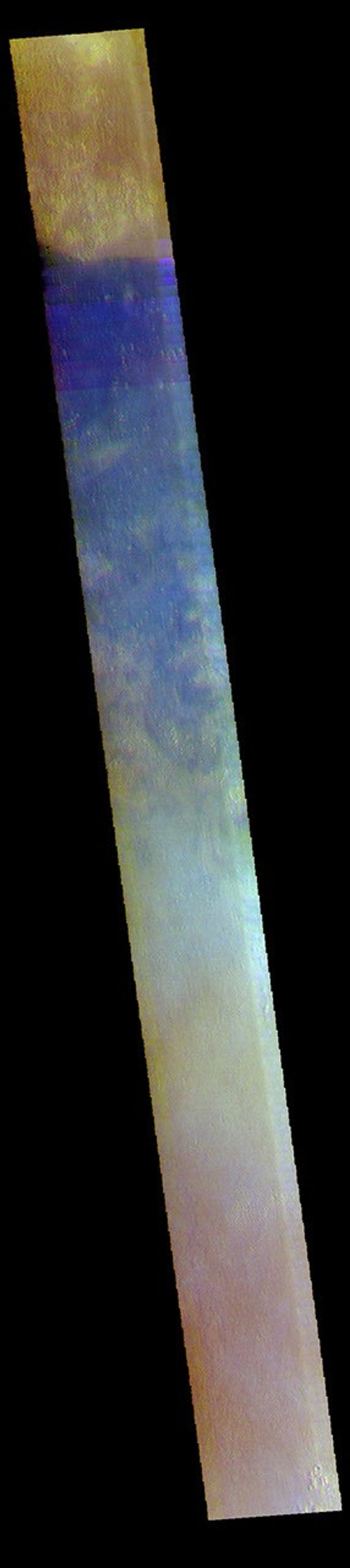 The THEMIS VIS camera contains 5 filters. The data from different filters can be combined in multiple ways to create a false color image. These false color images may reveal subtle variations of the surface not easily identified in a single band image.