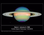NASA's Hubble Space Telescope took this false-color image of Saturn on Junary 4, 1998, providing detailed information on the clouds and hazes in Saturn's atmosphere.