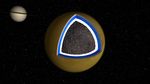 This graphic and animation depicts a cross-section of the Saturnian moon Titan. Cassini scientists speculate there may be a layer of liquid water mixed with ammonia about 100 kilometers (62 miles) below the surface of Titan.