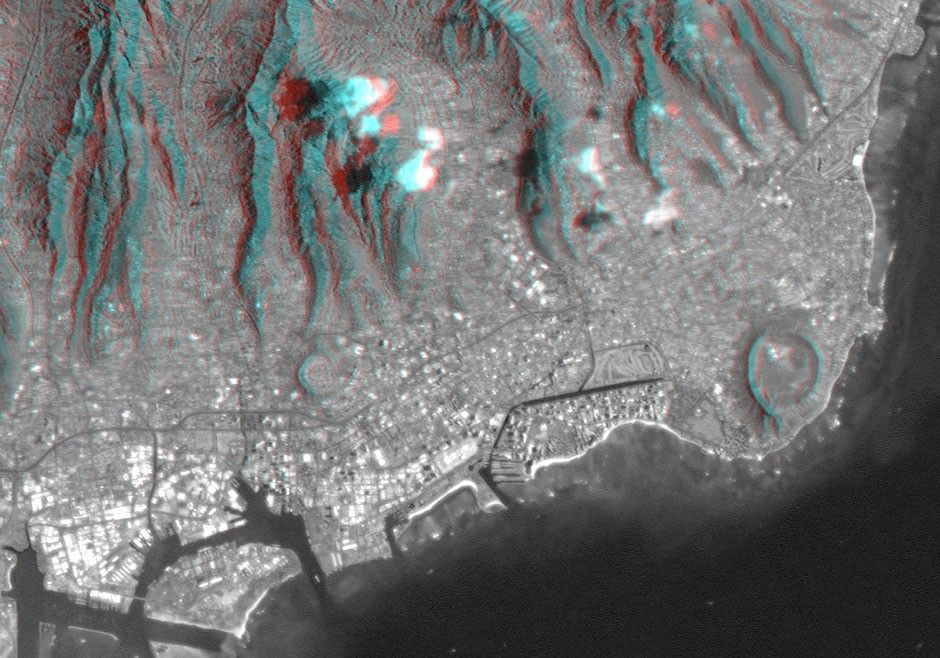 Honolulu, on the island of Oahu, is a large and growing urban area with limited space and water resources. This anaglyph, combining a Landsat image with SRTM topography, shows how the topography controls the urban growth pattern, causes cloud formation, and directs the rainfall runoff pattern. Red/blue glasses are required to see the 3-D effect. Features of interest in this scene include Diamond Head (an extinct volcano on the right side of the image), Waikiki Beach (just left of Diamond Head), the Punchbowl National Cemetary (another extinct volcano, left of center), downtown Honolulu and Honolulu harbor (lower left of center), and offshore reef patterns. The slopes of the Koolau mountain range are seen in the upper half of the image. Clouds commonly hang above ridges and peaks of the Hawaiian Islands, and in this rendition appear draped directly on the mountains. The clouds are actually about 1000 meters (3300 feet) above sea level. High resolution topographic and image data allow ecologists and planners to assess the effects of urban development on the sensitive ecosystems in tropical regions.