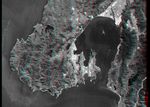 This anaglyph was generated by first draping a Landsat Thematic Mapper image over a topographic map from the Shuttle Radar Topography Mission, then using the topographic data to create two differing perspectives, one for each eye. When viewed through special glasses, the result is a vertically exaggerated view of the Earth's surface in its full three dimensions. Anaglyph glasses cover the left eye with a red filter and cover the right eye with a blue filter.