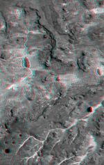 This anaglyph was generated by first draping a Landsat Thematic Mapper image over a topographic map from the Shuttle Radar Topography Mission, then producing the two differing perspectives, one for each eye. When viewed through special glasses, the result is a vertically exaggerated view of the Earth's surface in its full three dimensions. Anaglyph glasses cover the left eye with a red filter and the right eye with a blue filter.