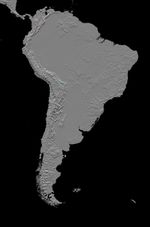 This anaglyph (stereoscopic view) of South America was generated with data from the Shuttle Radar Topography Mission (SRTM). It is best viewed at or near full resolution with anaglyph glasses. For this broad view the resolution of the data was first reduced to 30 arcseconds (about 928 meters north-south but variable east-west), matching the best previously existing global digital topographic data set called GTOPO30. The data were then resampled to a Mercator projection with approximately square pixels (about one kilometer, or 0.6 miles, on each side). Even at this decreased resolution the variety of landforms comprising the South American continent is readily apparent.