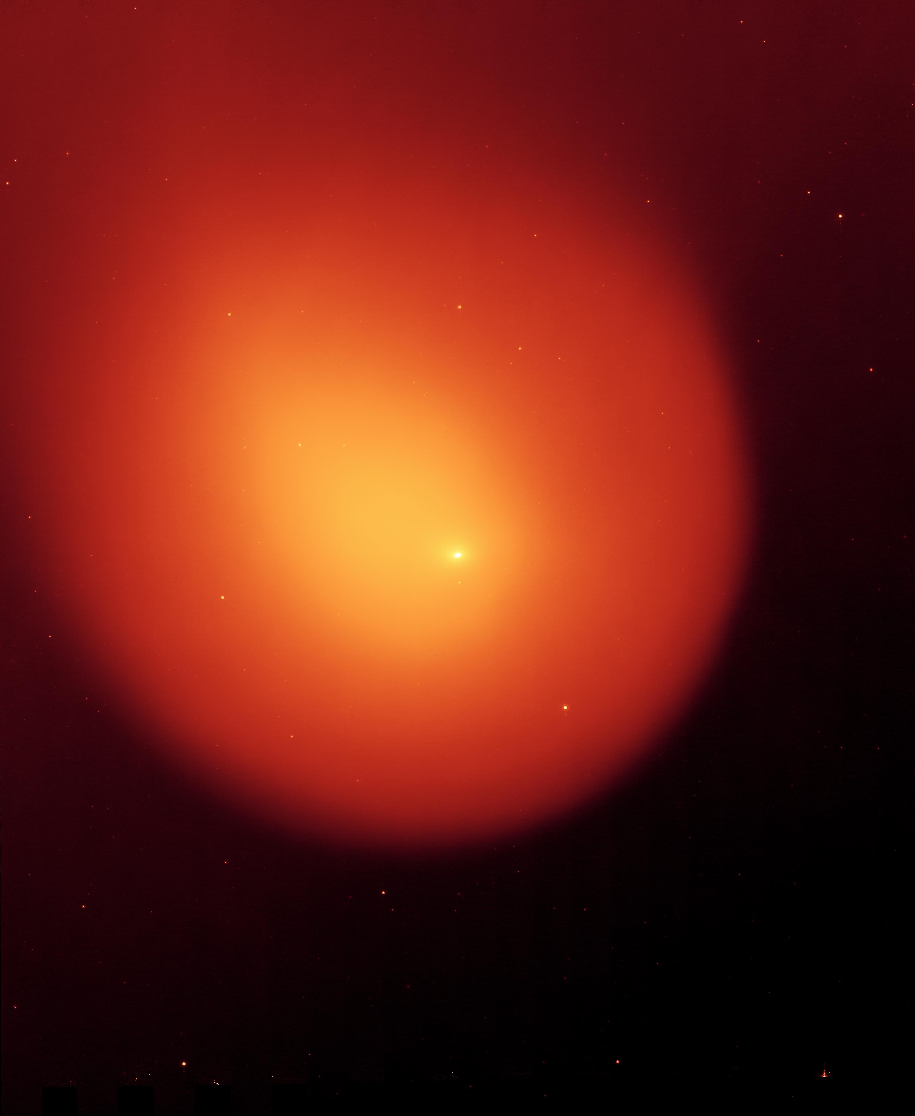 NASA's Spitzer Space Telescope captured the picture on the left of comet Holmes in March 2008, five months after the comet suddenly erupted and brightened a millionfold overnight. The contrast of the picture has been enhanced on the right to show the anatomy of the comet.