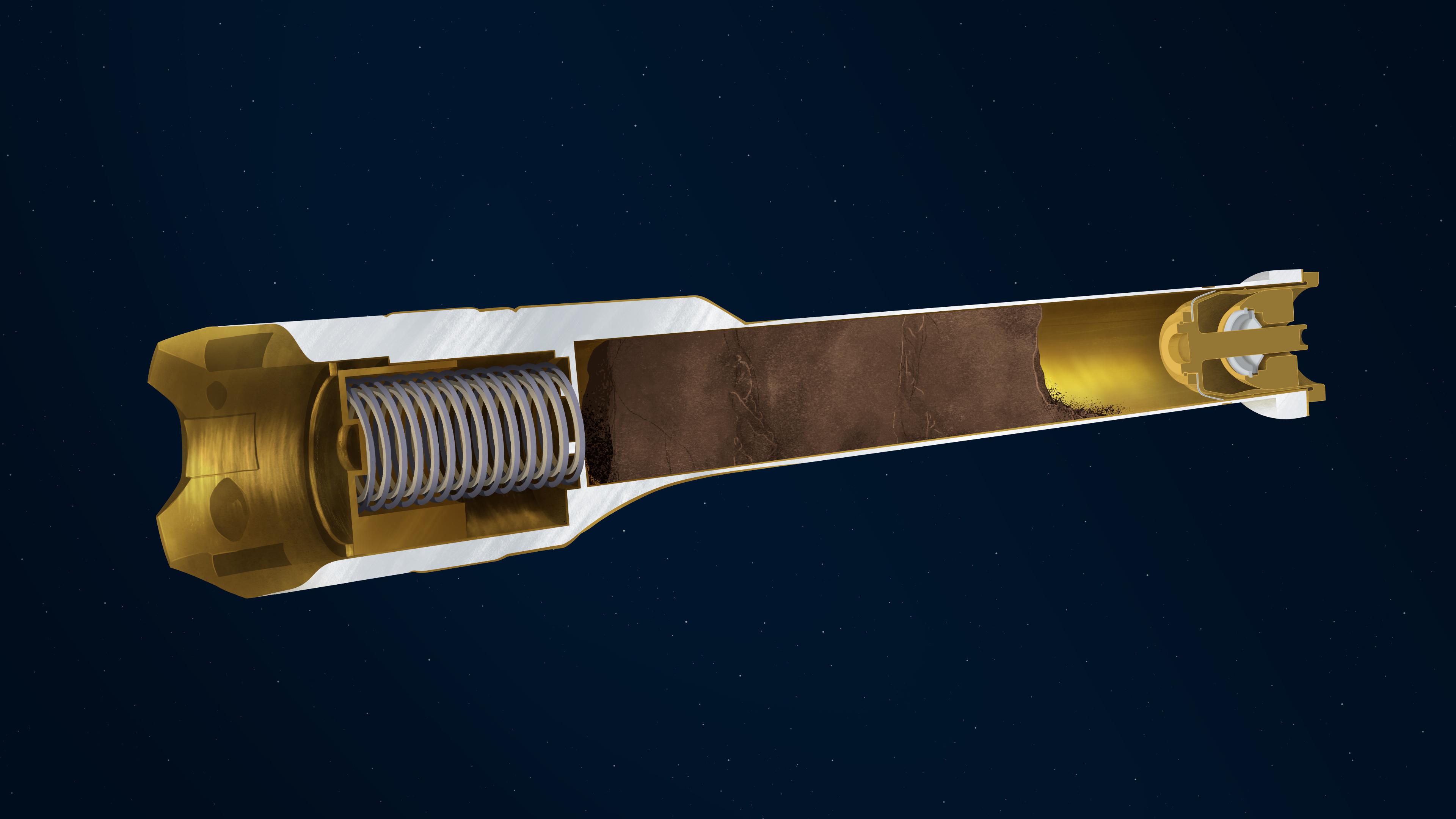 This illustration depicts the interior of a sample tube being carried aboard the Mars 2020 Perseverance rover.