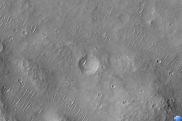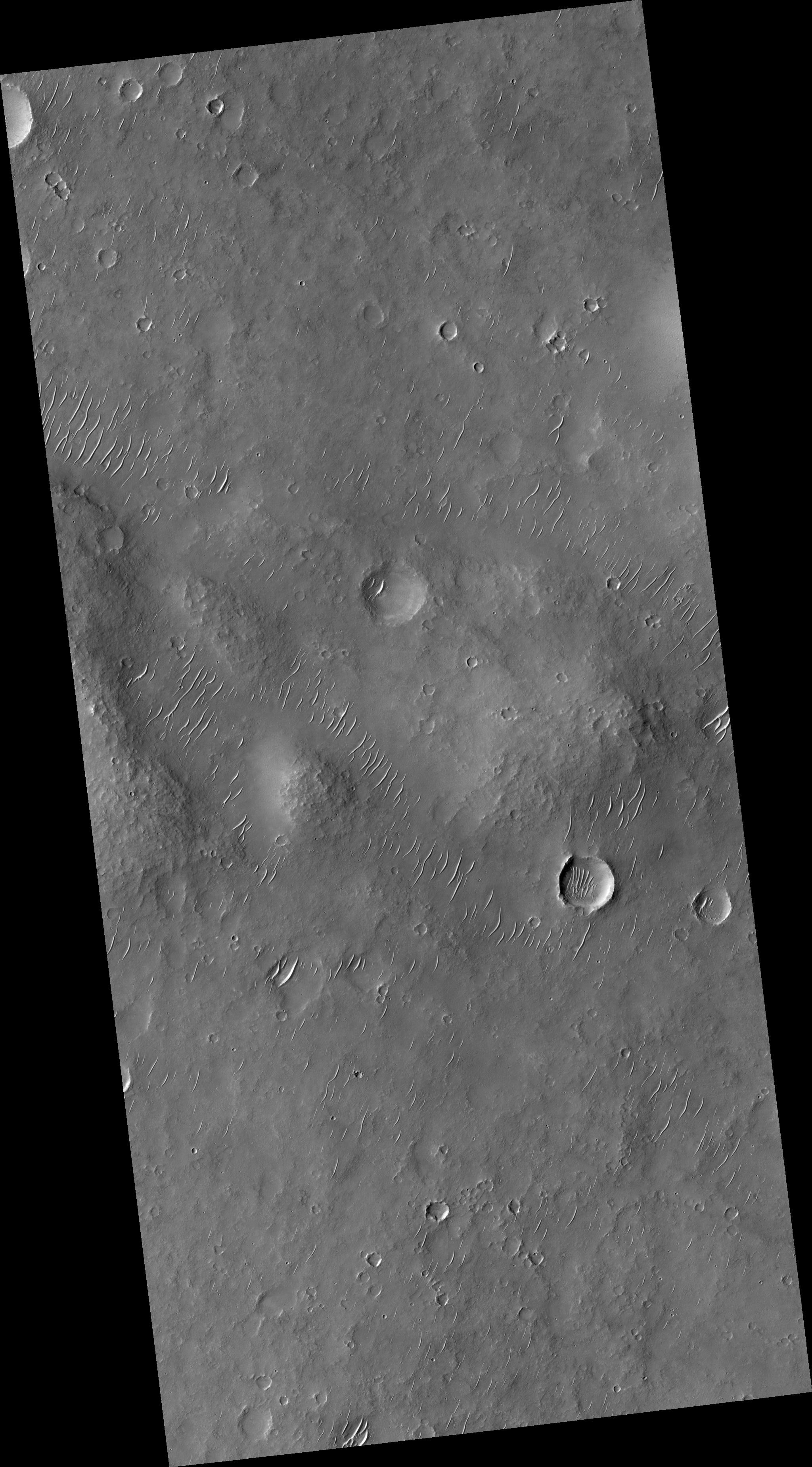 This HiRISE image (PSP_002432_1525) samples part of an ancient lava plain in Thaumasia Planum. The stack of lava flows has been folded into ridges the size of a chain of hills, as can be seen in the center of the image.