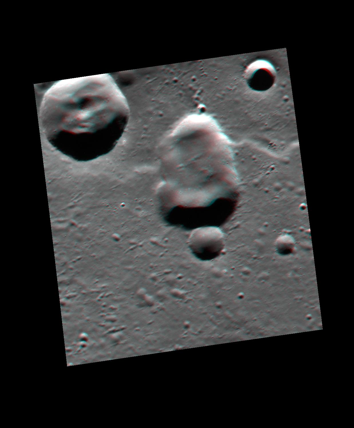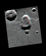 Like yesterday's image, and the one from last week, today's image features the same potential volcanic vent. However, today's image is actually a combination of two additional images that were taken by the spacecraft 255 seconds apart. During that time of just over 4 minutes, the spacecraft had moved enough to provide slightly different viewing angles of the same surface, enabling this 3D representation to be made. Find a pair of red-cyan glasses to view the 3D image, and the image has been rotated such that north is to the left to enhance the 3D effect.