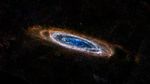 The glow seen here comes from the longer-wavelength, or far, end of the infrared spectrum, giving astronomers the chance to identify the very coldest dust in our galactic neighbor. These light wavelengths span from 250 to 500 microns, which are a quarter to half of a millimeter in size. Herschel's ability to detect the light allows astronomers to see clouds of dust at temperatures of only a few tens of degrees above absolute zero. These clouds are dark and opaque at shorter wavelengths. The Herschel view also highlights spokes of dust between the concentric rings.
