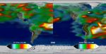 This time series, from one year of Tropospheric Emission Spectrometer (TES) measurements, shows how powerful the TES data are for understanding emissions, chemistry, and transport in the troposphere.In the Southern Hemisphere (SH), CO and O3 are highly correlated throughout the year. High values indicate active biomass burning, which reaches a maximum during SH spring (Sept., Oct., and Nov.).
