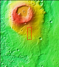 Today's VIS image shows the southern flank, where the volcanic material has been eroded into a ridge and channel surface.